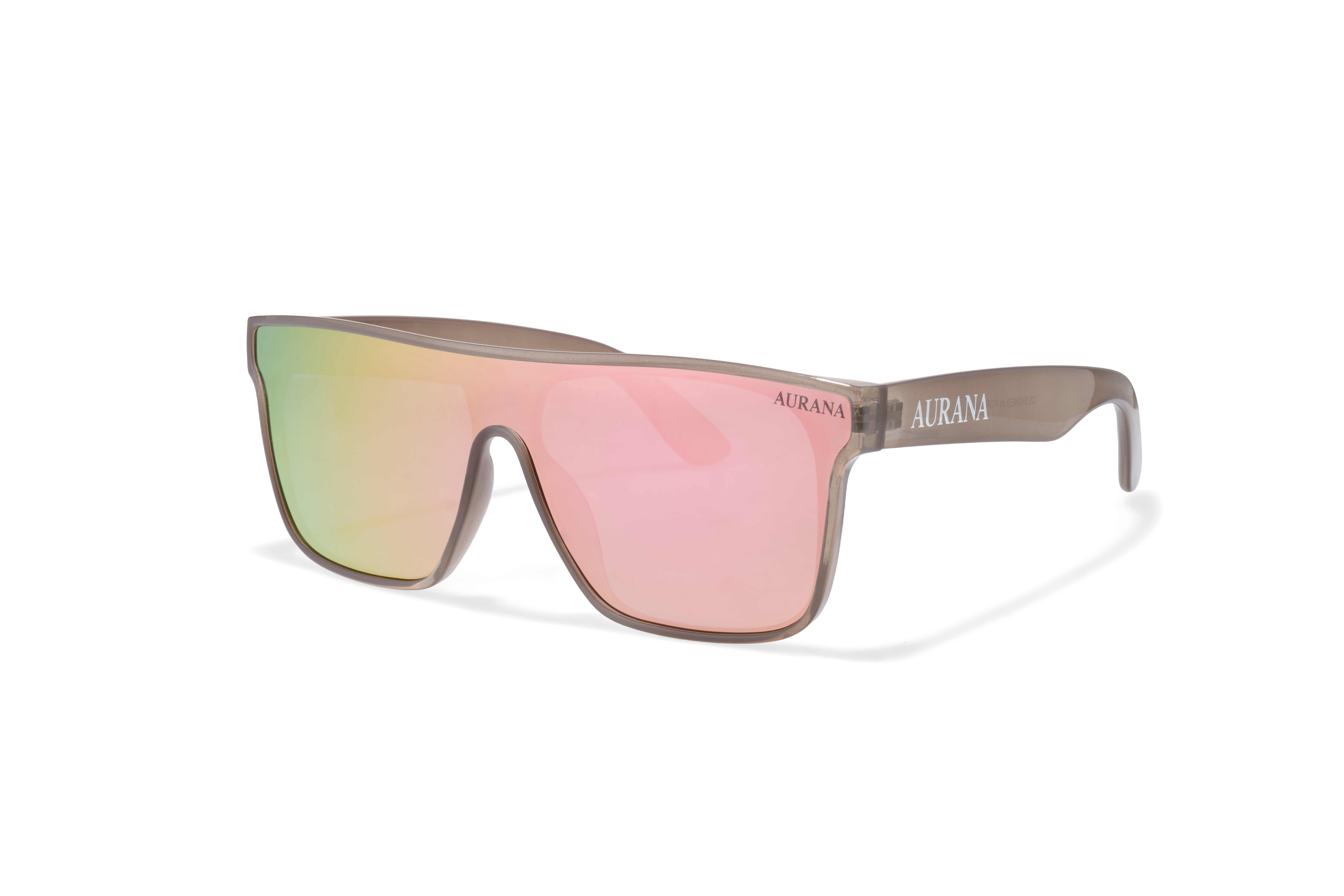 O modelo NOVA BRONZE combina linhas desportivas com uma armação translúcida bronze de acabamento ligeiramente brilhante e lentes espelhadas em tons dourado e rosa. Um modelo ousado mas equilibrado, para quem quer marcar presença com leveza e sofisticação.